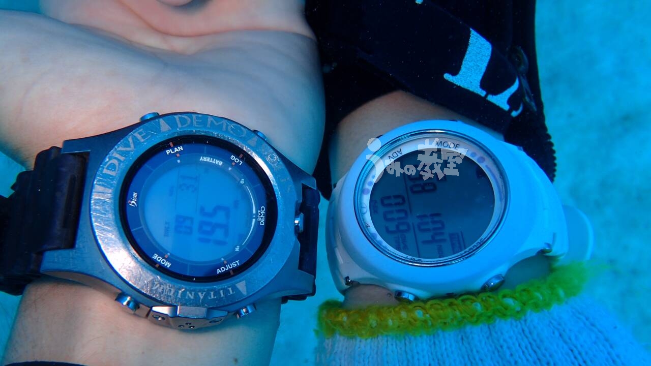 このコンピューターを見比べると、同じ水深で滞在可能時間がエアー31分に対してエンリッチ1時間4分とおよそ2倍![]()