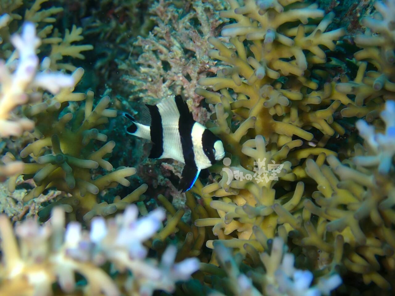 沖縄らしいミスジリュウキュウスズメダイの群れですね〜〜![]()