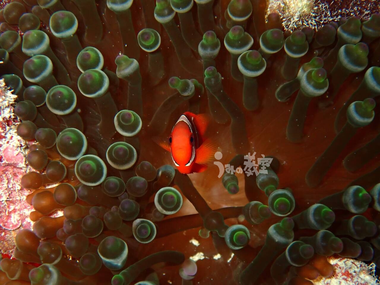 最近見つけたまだ複数ラインを持っているハマクマノミおちびちゃん![]()