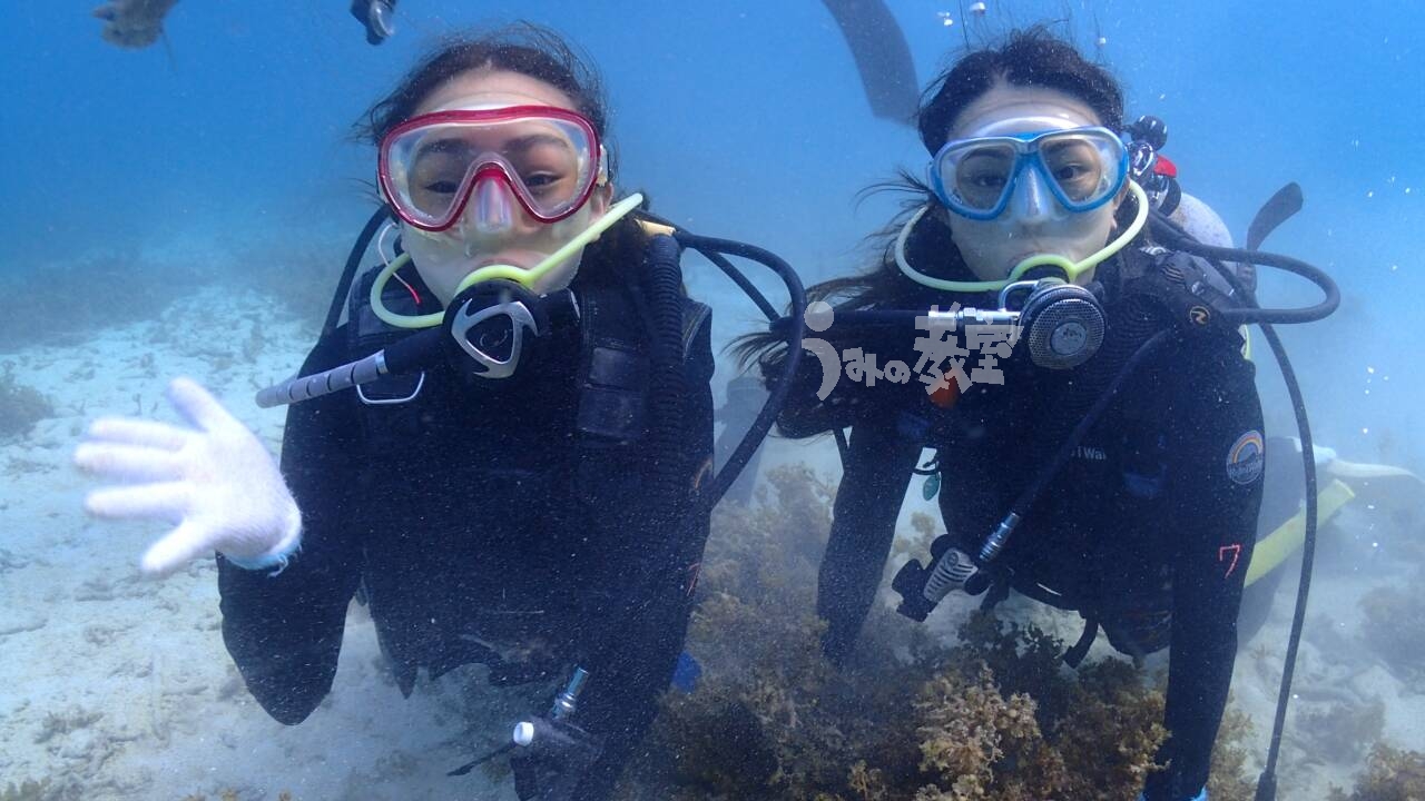ビーチからの景色とは違う、水面からのぞき込むのとも違う、ダイビングは水中で呼吸が出来る不思議な感覚、空を飛んでいるような浮遊感、目の前にはカラフルな魚たち・・・未知の世界との出会いの連続
